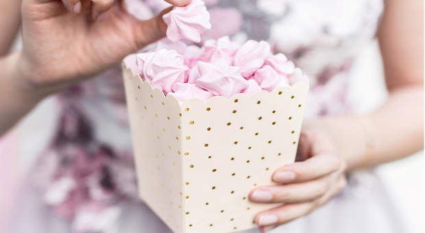 Kom skumfiduser, små chokolader eller andet lækkert guf tilfældigt rundt på bordene, som både smager godt og ser flot ud. Du kan enten komme slikket direkte på bordet, i søde cupcake forme eller i fine små poser. Med spiselig pynt kan det aldrig gå helt galt.